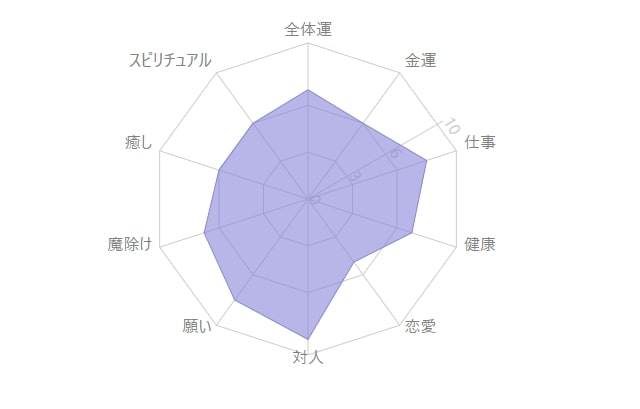 人間関係の向上や円滑なコミュニケーション、キャリアの発展や目標達成をサポートします。全体運、健康、魔除けの効果があり、バランスの取れた幸運と保護をもたらします。