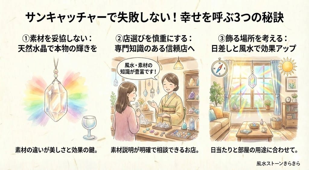 サンキャッチャーのデメリットを正しく理解し、安心して暮らしに彩りを取り入れていただくことです。
