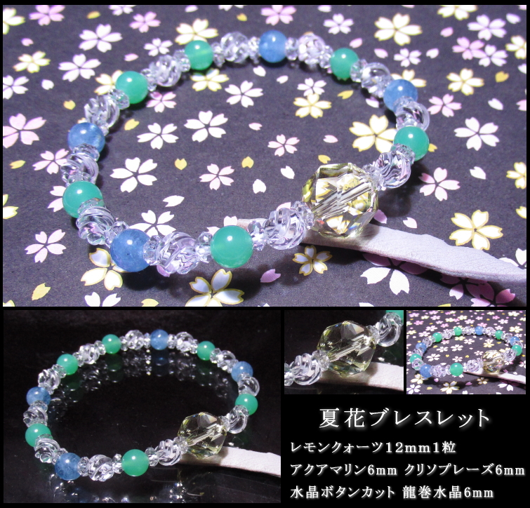 ○龍巻水晶6mm ○水晶4×4×2 ボタンカットを組み合わせたブレスレットです。