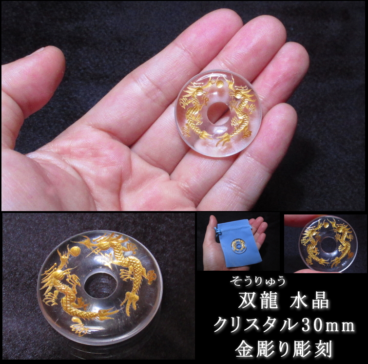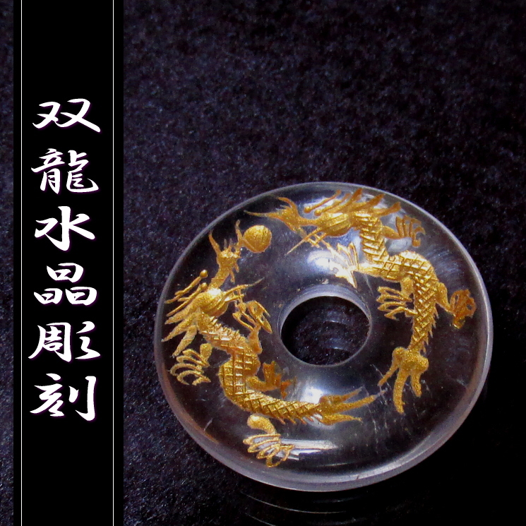 双龍水晶彫刻 金彫り 30mm