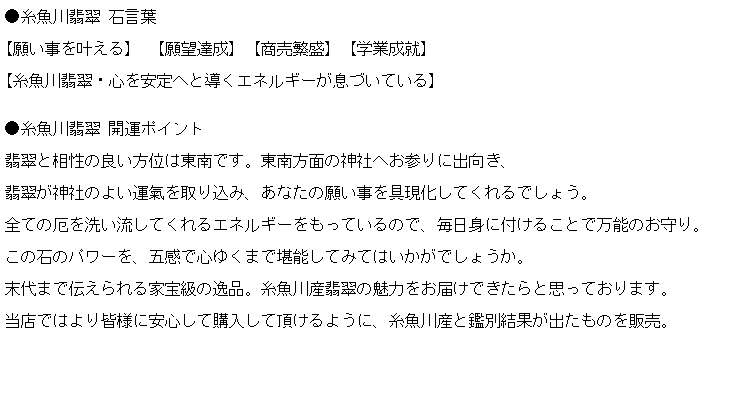 商品名 : 糸魚川翡翠 数珠ブレスレット8mm NO.48