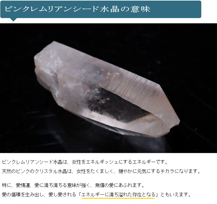 商品名 : ピンクレムリアンシード水晶ポイント/カブラル産 No7