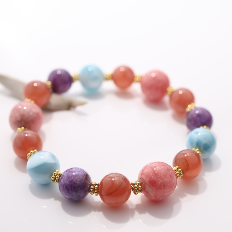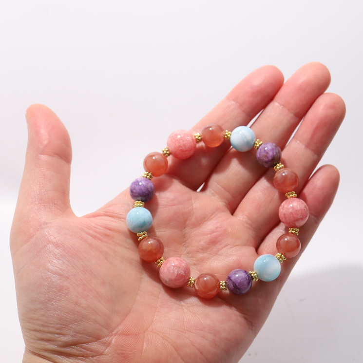 心花(しんか)ブレスレット:インカローズ×ラリマー×チャロアイト/Special Edition(1点もの)